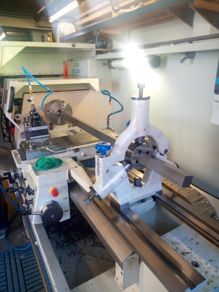 Projekte Führungsrollen-Halter nach Muster Reparatur Trapezgewindetrieb Vierkantwellen mit Lünette drehen Getriebeteile aus Normteilen Aluminium- Prototypen Übergroßes Rohr mit Spezial Lünette